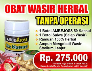 Obat Wasir Ambeien Ambejoss Terbuat dari Ekstrak Mahkota Dewa, Daun Ungu, Serta Kunyit Putih, yang Dipercaya dari dulu ampuh untuk mengobati penyakit wasir atau ambeien. Mengobati Wasir Stadium 1 sampai Wasir Stadium 4 Hanya dengan Rp. 275.000 Tanpa harus Operasi.